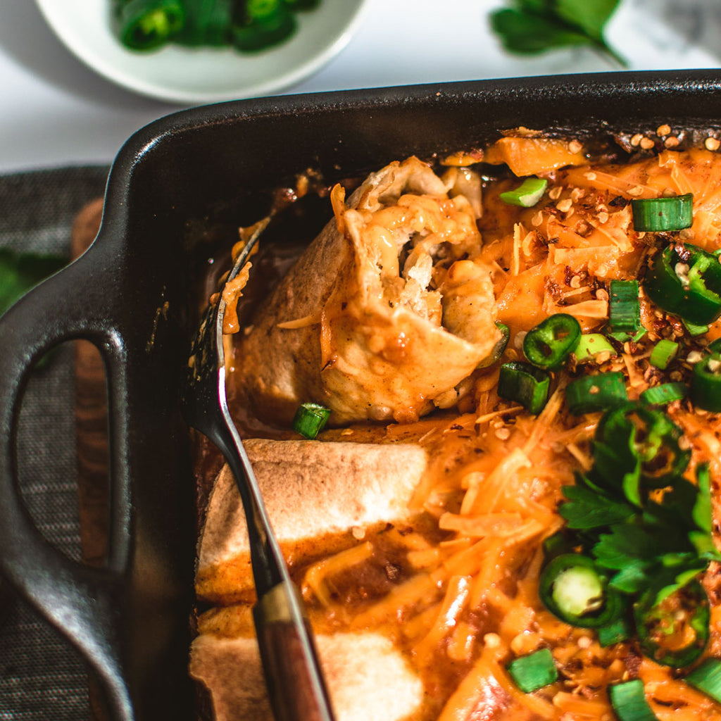 It's Enchilada making time! Using all the traditional ingredients and only substituting our Plant-Based Chicken, we'll have you second guessing if these enchilada's are the real deal.