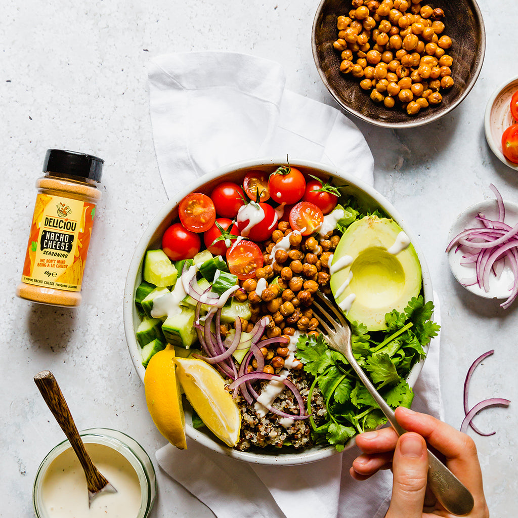 Plant power! Nourish yourself with this incredible looking Chickpea Bowl featuring our Nacho Cheese seasoning.