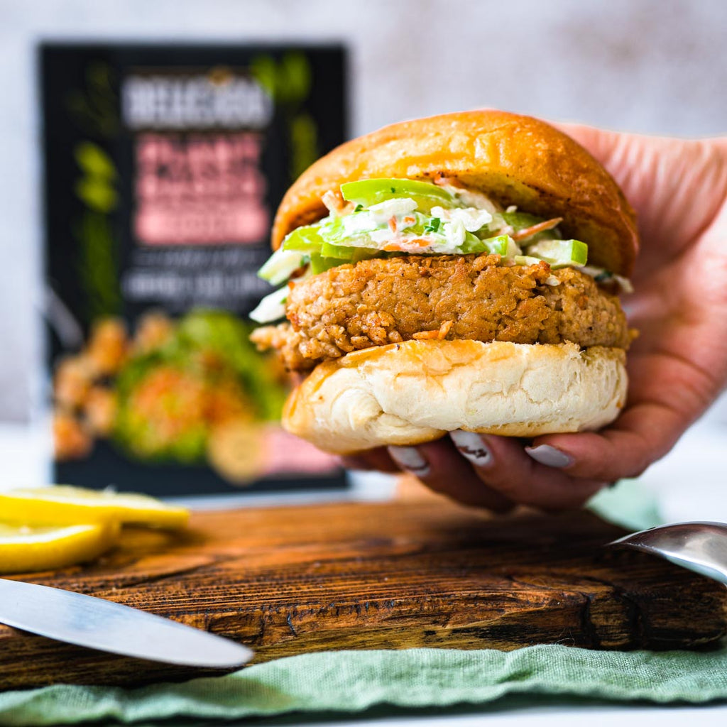 It’s a little bit fancy and a little left-of-centre… this sweet and tangy green apple slaw balances the richness of the vegan pork burger. It’s something different that’ll be sure to take your plant-based burger game to the next level!