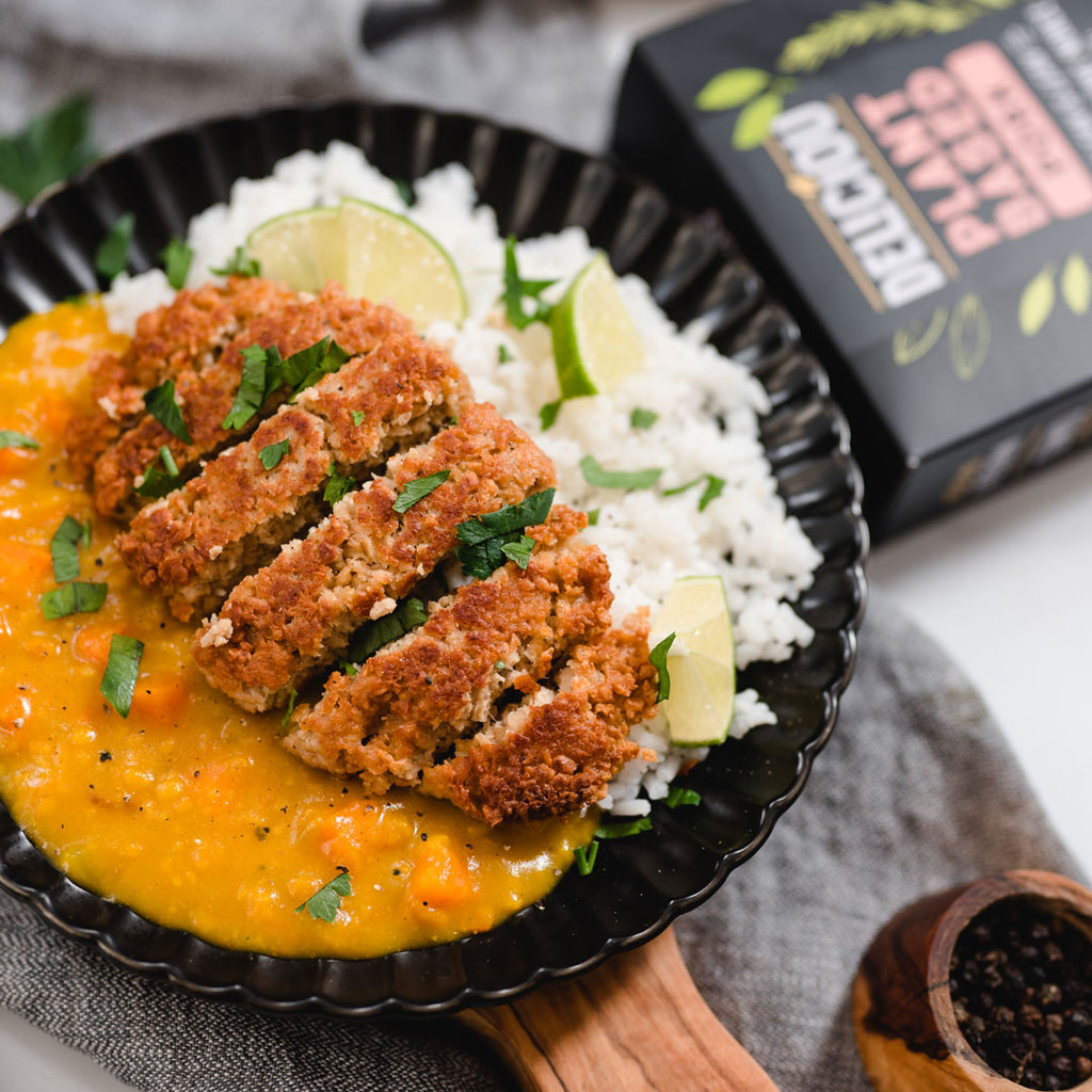 Discover why this dish is a household favourite in Japan with this easy-to-make 100% plant-based pork katsu curry recipe. With a crispy plant-based pork patty served over rice and smothered in a creamy curry sauce it's the ultimate comfort meal.
