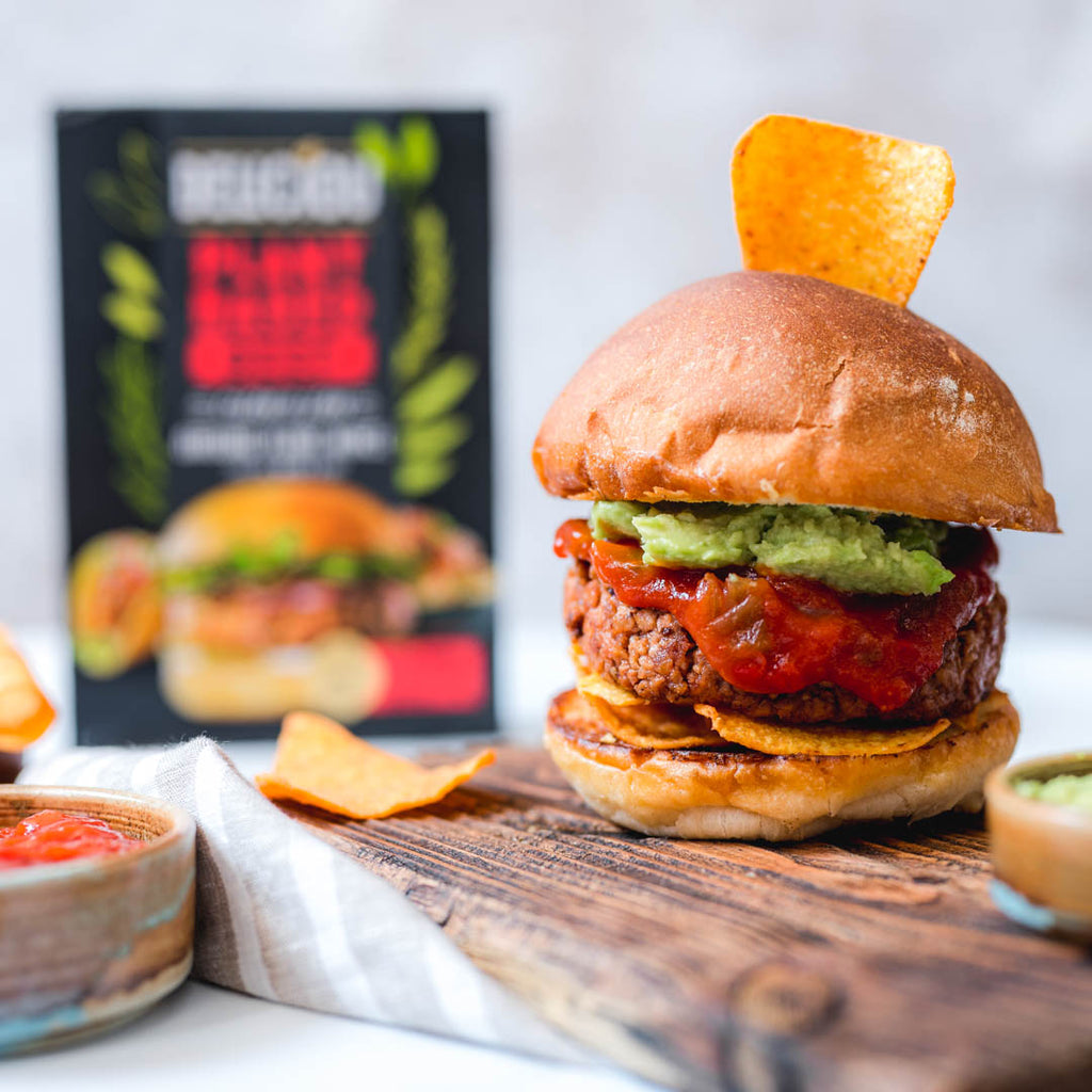 Can’t decide between tacos and burgers? Try this taco burger! It’s 100% plant-based and 110% DELICIOUS! It’s got all your favourite taco flavours, a perfectly spiced vegan beef patty and crunchy corn chips to take the texture to the next level.