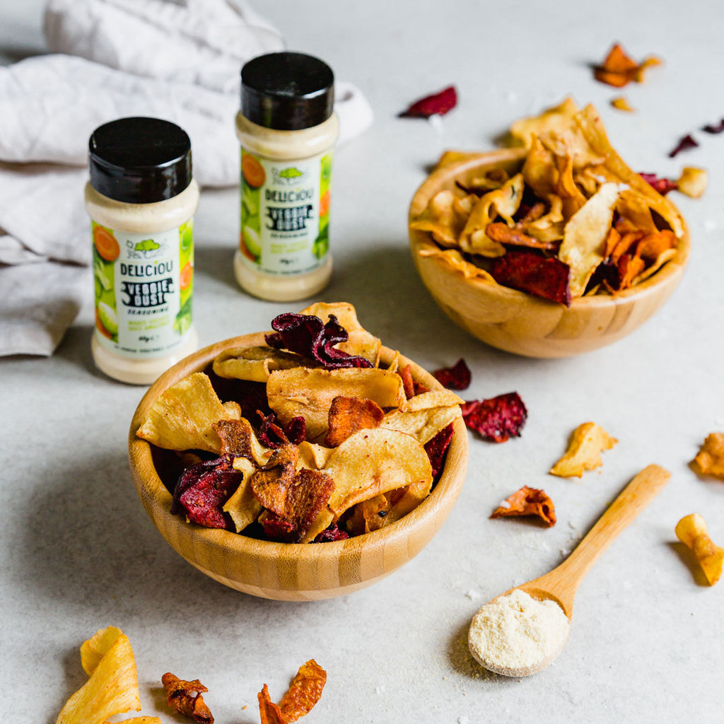 Our tasty Veggie Dust Seasoning adds an addictive savoury flavour that will have you licking your lips with each chip. Switch this recipe out with any of your favourite root vegetables to make the ultimate savoury snack!